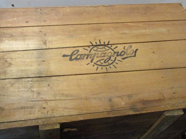 CAMPAGNOLO Vintage 60's/70's shipping crate with no cover will make a great base for a coffee table only to display your CAMPAGNOLO treasures within, DUE NOTE: Pro Rated shipping charges has been added into the price of this item. CRATE001 07/21/25